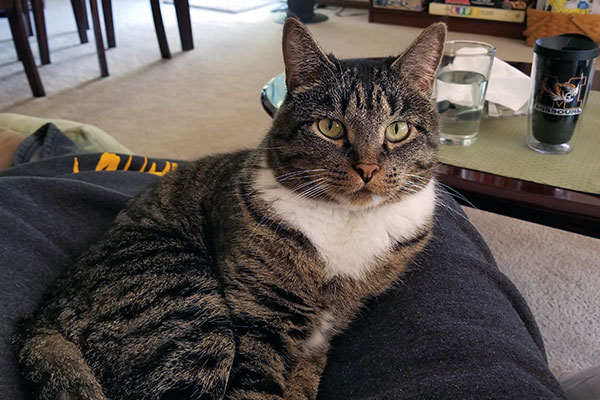 Georgie is the sane kitty among us. She is an expert hunter and even better snuggler. We also rescued Georgie at the same time as Jeffery (brother and sister in an abandoned litter).